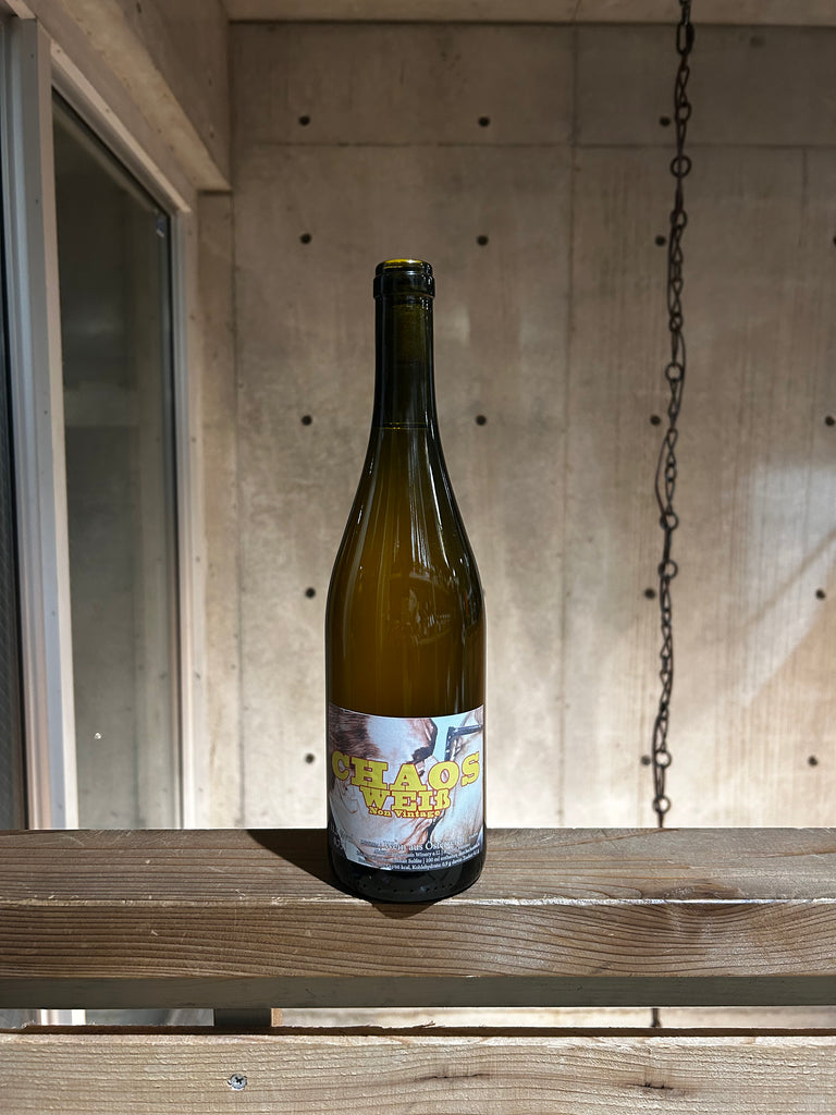 9 月上旬に手摘みで収穫。プラスチック製容器にて、50%は全房プレス、残り 50%は2~5日間スキンコンタクト、ステンレスタンクにて自然発酵。全ての酵母や澱と共にステンレスタンクにて 6~36 か月熟成。タンクで寝かせてきたワイン(2022 年と2023 年のワイン)を 2025 年 5 月に新しいワインとブレンド、そして、6 月にボトリング。無濾過、無清澄、全ての工程において無添加。ゲミシュター・サッツをカオス(混沌)にて表現。ラベルの絵は、ベルリンの壁に描かれているレオニード・ブレジネフとエーリッヒ・ホーネッカーの絵を使用。当時、色々な混乱を引き起こしていたことと、カオスの意味を掛け合わせてこのラベ