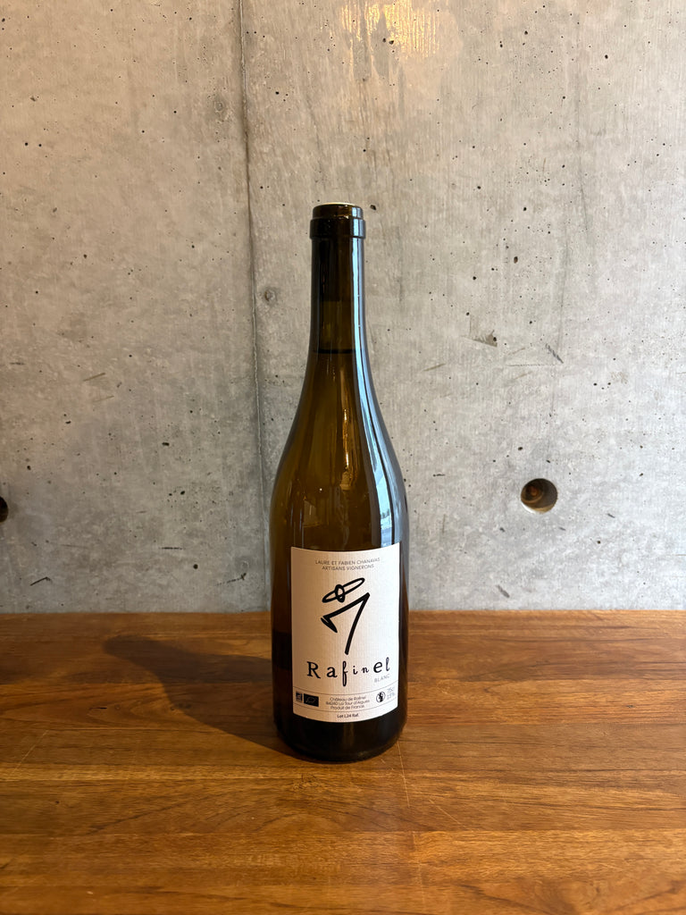 品種:グルナッシュ・ブラン 40%、ルーサンヌ 30%、ヴェルメンティーノ 30%醸造:手摘みで同時に収穫した全ての品種のブドウをダイレクトプレスして、木樽(新樽は用いない)で野生酵母のみで温度管理を行わずに一緒に自発的に発酵。その後、ステンレスタンクでシュール・リーの状態でマロ発酵(自然に実施)と熟成。SO2 やその他の醸造添加物は一切加えずに醸造。無清澄、ノンフィルターで瓶詰め。SO2 は瓶詰め時に限り必要最小限のみ添加。現行ロットは 2024 ヴィンテージ。収穫日は全て 9/1。アルコール度数 13 度。総生産量630 本。2025 年 6 月時点の SO2 トータルは 20mg/l。*『Rafinel ラフィネル』とは、ドメーヌが 2023 年に新しくフェルマージュで栽培を始めた畑のリューディの名称。このリューディは、約 2 ヘクタールの畑で、シャトーが付随しているため、ドメーヌは、そこにある醸造所と畑をフェルマージュで借りているそうです。このリューディに敬意を表すためにキュヴェ名としたそうです。